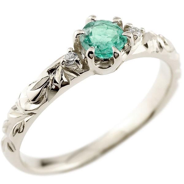 ハワイアンジュエリー ピンキーリング エメラルド 一粒 大粒 指輪 5月誕生石 エメラルド ホワイトゴールドk18 ピンキーリング 18k 5月誕生石 ハワイアンリング 18金 K18 18kwg ダイヤ ストレート ew100 かがやきジュエリー工房アトラス
