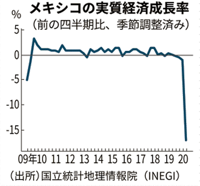 メキシコ4 6月gdp 前期比17 減 鉱工業が落ち込む 日本経済新聞