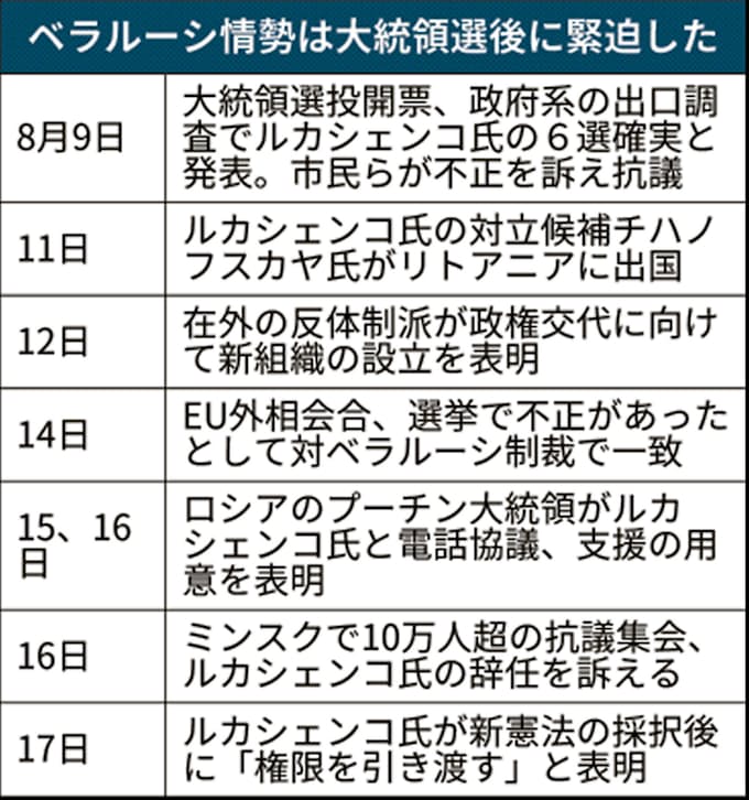ベラルーシ政治混乱 ロシア 欧州接近を警戒 日本経済新聞