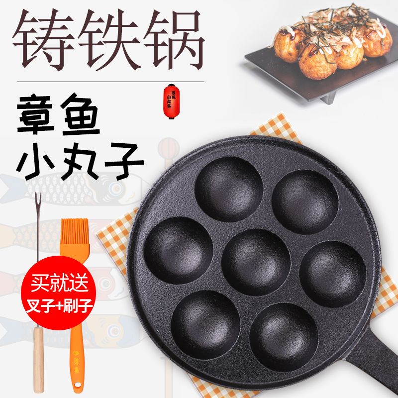 烤盤章魚小丸子機烤盤鑄鐵鍋家用小型燒鵪鶉蛋模具無涂層不粘煎蛋鍋 露天拍賣